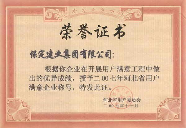 07河北省用戶滿意企業(yè)